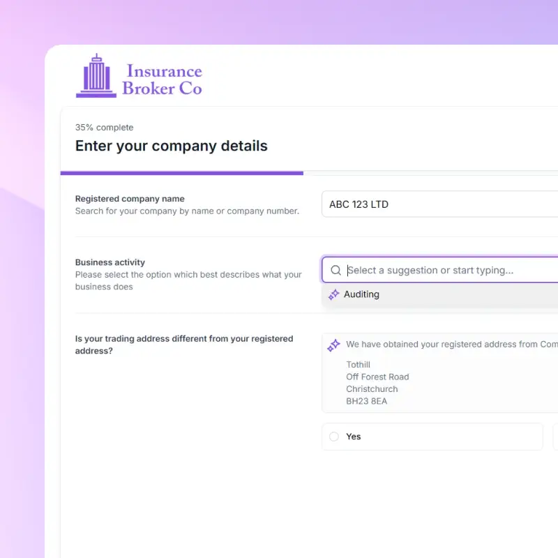White-labelled online application process for new clients and renewals.