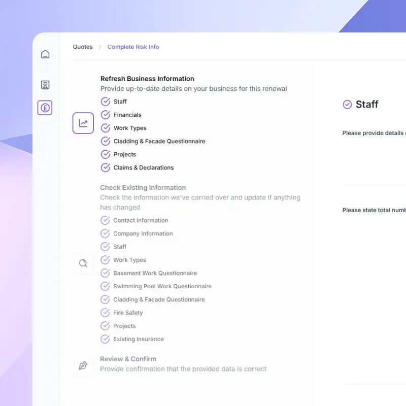 A guided, structured renewal flow cuts out missing information, rework and the back-and-forth that slows things down.